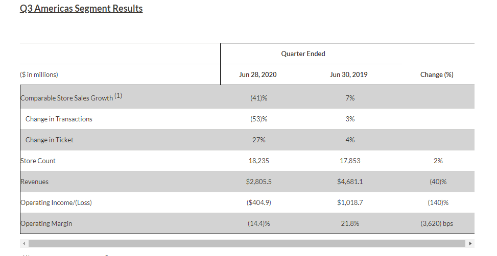 周二,星巴克公布了第三财季财报。财报显示,公司三财季营收42亿美元,市场预期40.59亿美元,去年同期68亿美元;净亏损6.78亿美元,市场预期亏损7.23亿美元,去年同期盈利13.7亿美元;同店销售下降40%,市场预估下降42.8%;中国同店销售下降19%,预估下降21.7%。星巴克CEO表示,99%的中国门店都已开业,许多门店实现了满座。