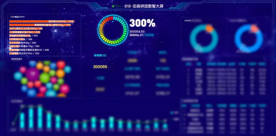 在拼团活动开始之前,全球蛙团队对田森超市的门店信息以及导购信息进行了收集,并按照田森超市的需求将拼团目标分解到具体的各个门店,在拼团活动进行中,实时更新各门店的目标达成情况,同时跟进销售额、订单数、顾客数、客单价、导购数等多维数据的变化,保证活动进行中运营有策略、导购有目标。