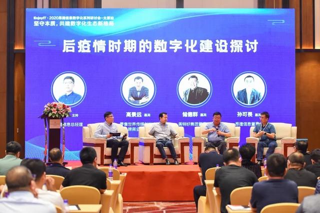 沙龙环节,美特好集团董事长、全球蛙创始人储德群先生与零售世界传媒创始人、中国品牌商业联盟秘书长高景远、昂捷董事长孙可畏分别从不同角度就后疫情时代数字化建设思路和趋势预判展开深度探讨。