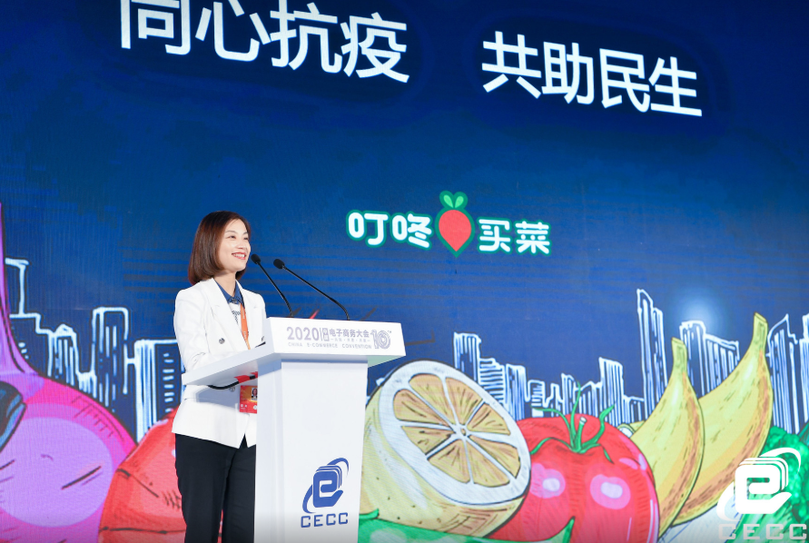 在2020中国电子商务大会上,叮咚买菜副总裁张奕发表了题为《同心抗疫,共助民生》的演讲。