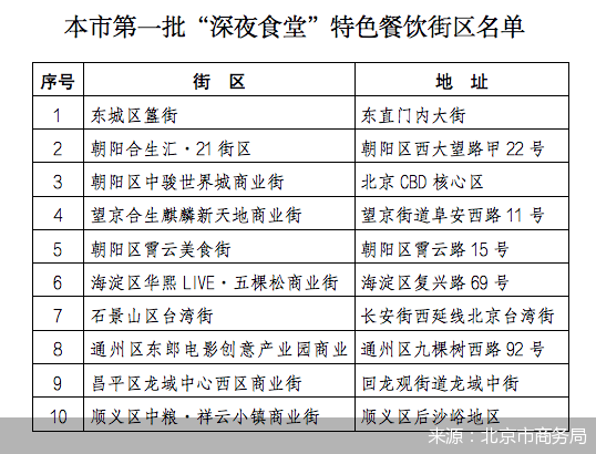 9月15日,北京市商务局官网发布第一批“深夜食堂”特色餐饮街区。