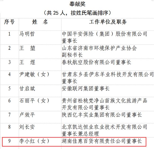 龙商网消息: 10月17日是第7个全国扶贫日,国务院扶贫开发领导小组在北京召开2020年全国脱贫攻坚奖表彰大会暨脱贫攻坚先进事迹报告会。当天上午,国务院扶贫开发领导小组发布关于表彰2020年全国脱贫攻坚奖的决定,湖南佳惠百货有限责任公司董事长李小红获评2...