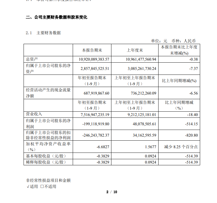 10月28日,银座股份公布2020财年第3季度财报。财报数据显示,报告期内银座股份营收达75.17亿元,较去年同期的92.12亿元下降18.40%;净利润达-1.99亿元,相比去年同期的4807.85万元暴跌514.15%。本报告期末,经营活动产生的现金流量为6.88亿元,相比去年去年...