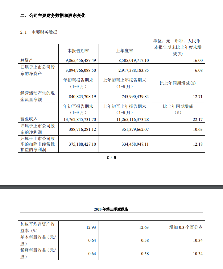 龙商网消息: 10月31日,家家悦公布2020财年第3季度财报。财报数据显示,报告期内家家悦营收达137.63亿元,较去年同期的112.65亿元上涨22.17%;净利润达3.89亿元,相比去年同期的3.51亿元上涨10.63%。本报告期末,经营活动产生的现金流量为8.41亿元。...