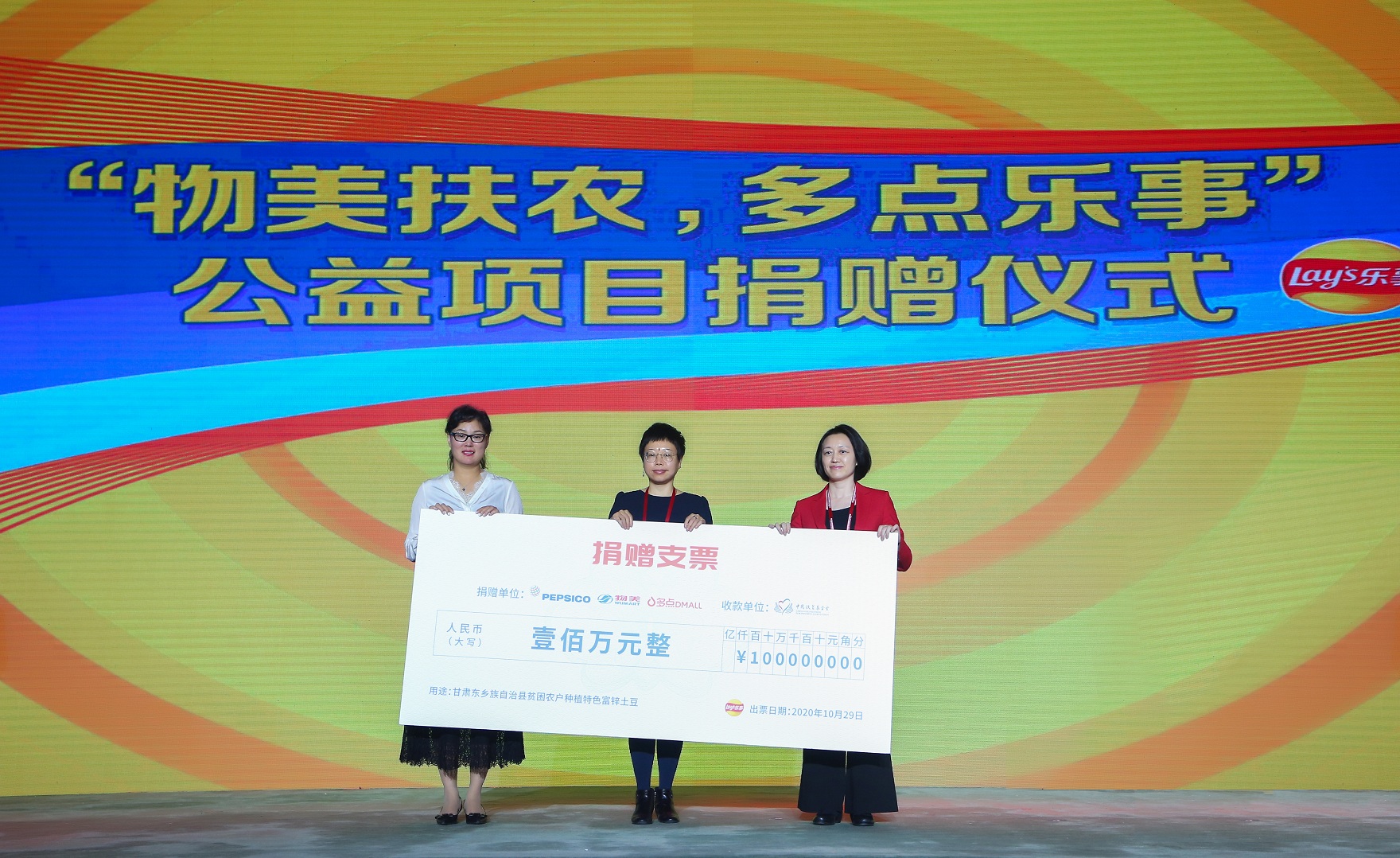 龙商网消息:近日,在第三届北京消费品博览暨数字零售峰会上,百事公司大中华区(以下简称“百事公司”)联合物美集团、多点平台和中国扶贫基金会举行了“物美扶农,多点乐事”公益活动的捐赠仪式。百事公司和物美集团联合宣布向中国扶贫基金会捐赠100万元资金,用于支持甘肃省临夏州东乡族自治县贫困农户种植富锌马铃薯,帮助农户实现脱贫致富。物美集团将收购土豆并在物美商超售卖,打造创新型扶贫项目,不仅动员企业和消费者的参与,也助力农业可持续发展。