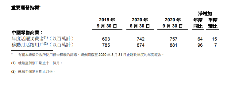 阿里巴巴发布2021财年第二财季财报。财报显示,中国零售市场年度活跃消费者达7.57亿,较截至2020年6月30日止12个月期间增加1500 万。