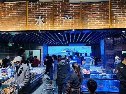 在果蔬区,商场特意为广大顾客精心准备了精品蔬菜,菜品经过清洗,并做了搭配,所有食材回家拆封即可使用,备受年轻人青睐。据银座购物广场店管理人员介绍,店里的蔬菜水果全部自营,直接从基地直采,从味道、鲜度和价格上给予消费者更好的体验。而在水产区,LED大屏上一只巨大的蓝鲸摆动着尾巴迎面游来,场景化的体验模式,使人仿佛置身于小型水族馆,让人乐在其中,流连忘返。走向加工区域,阵阵饭香迎面袭来,这里井然成了省内特色美食的大荟萃,热气腾腾令人垂涎。