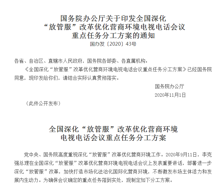 国务院办公厅印发《全国深化“放管服”改革优化营商环境电视电话会议重点任务分工方案》。方案提出,督促新增跨境电商综合试验区、市场采购贸易方式试点地区抓紧制定实施方案;推动各类公共海外仓向跨境电商企业共享仓储容量、货物物流等数据信息,方便企业利用海外仓资源。