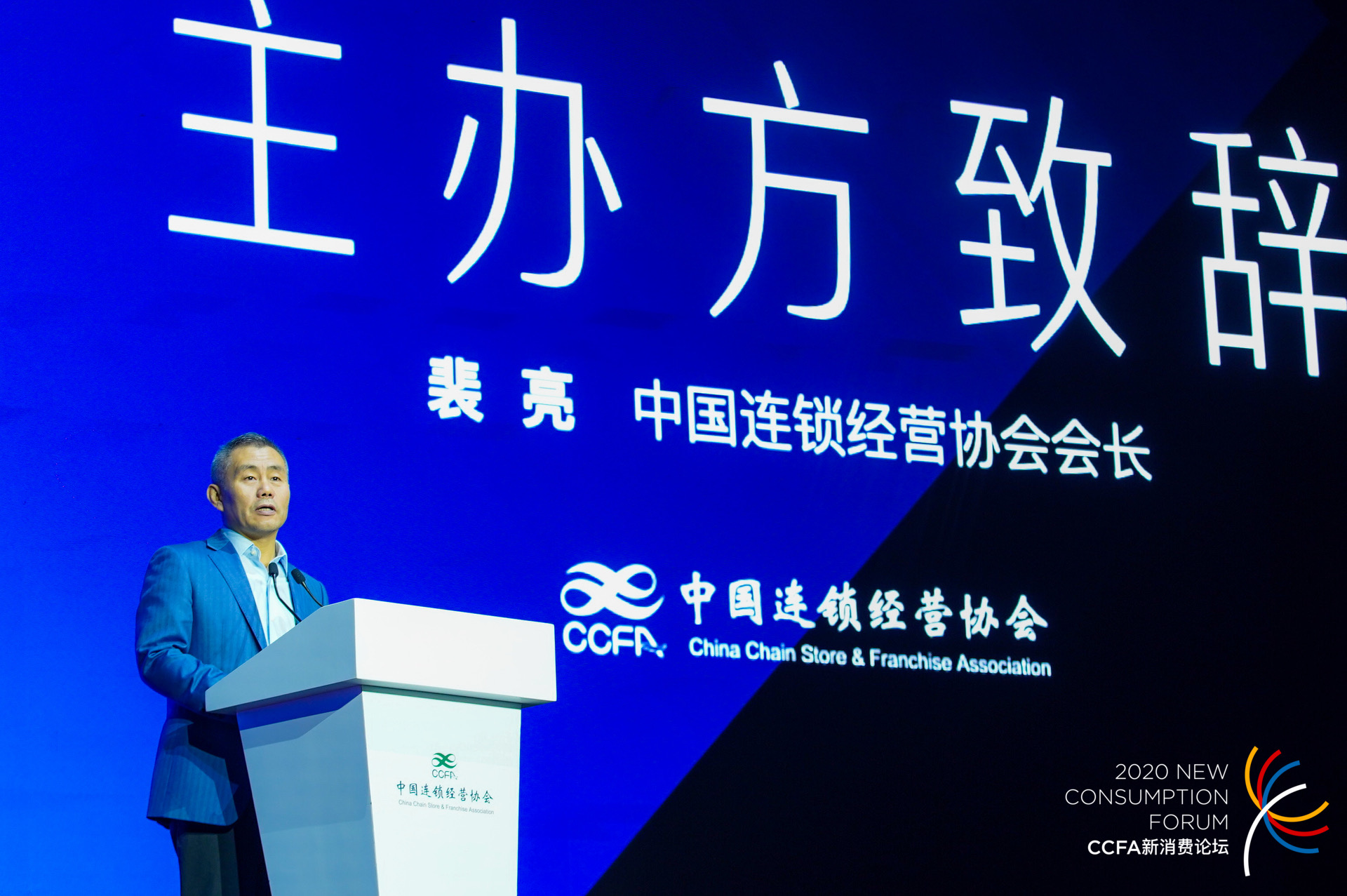 作为主办方,中国连锁经营协会会长裴亮率先致辞。他表示,2020年零售业最大的一个特点是实体零售线上化的加速发展。受疫情影响,直播快速普及,社区团购一路狂飙,互联网巨头纷纷入局社区团购,会对整个零售格局未来的发展带来明显冲击。
