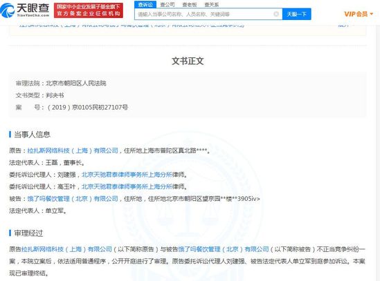 北京市朝阳区人民法院审理认定饿了吗公司注册行为具有明显的攀附他人知名商标的意图,构成不正当竞争,一审判处饿了吗立即更企业名称。