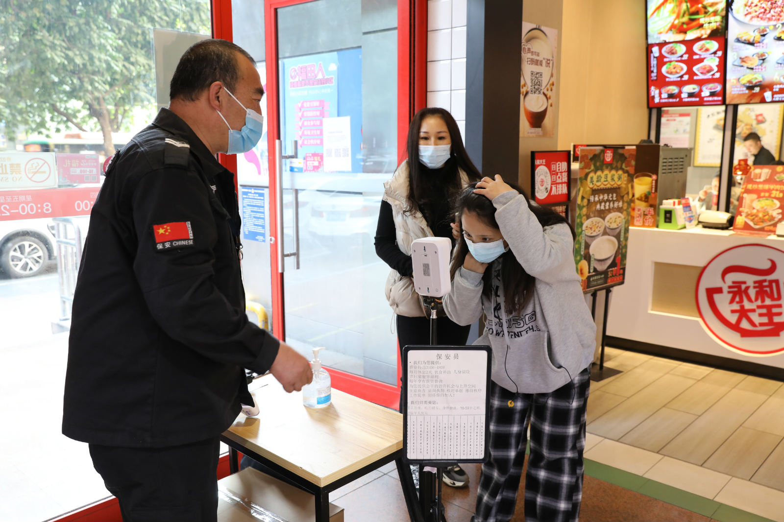 ▲顾客进超市前需要通过体温检测。