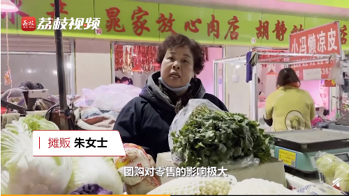 在社区团购的冲击下,不少菜场摊贩的生意受到影响。陕西西安一菜场摊贩朱女士介绍,如今社区团购的促销力度很大,部分菜品的价格甚至低于菜品的进价,对零售影响极大。以前大部分菜品都供给到饭店,今年行情不好,只能靠零售。以前一天最低(营业额)都是一两千,现在一天只能卖三四百元,几乎差了三分之二。