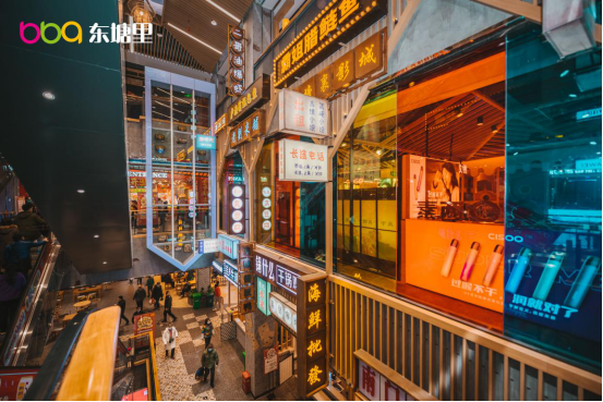 东塘里内部以湖湘风格为设计概念,极具烟火气息、老长沙味道。比如网红楼梯、经典全透明窗户造型、过道都有休闲桌椅和全开放式露台,象征自由、开放、团聚与步步高升。设计者感言:如今随着城市的发展和变迁,隔门隔栋让人与人之间的关系日渐淡漠、疏远。在步步高憧憬的蓝图中,东塘邻里中心恰好可以打破这重关系屏障,构建“无阻碍交流”,并非消费者硬生生买点东西就走,而是有传统中国式的人情味、烟火气。