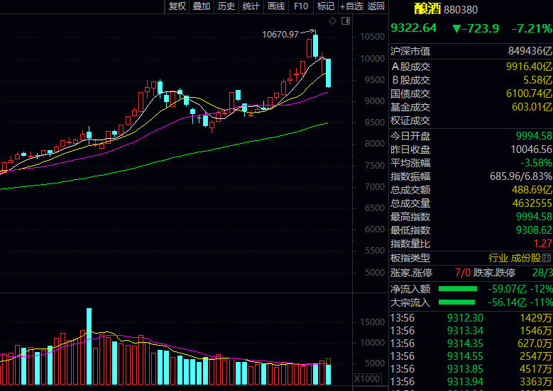 周一的股市,白酒板块整体下跌了超过7%,在各大板块里跌幅第一。