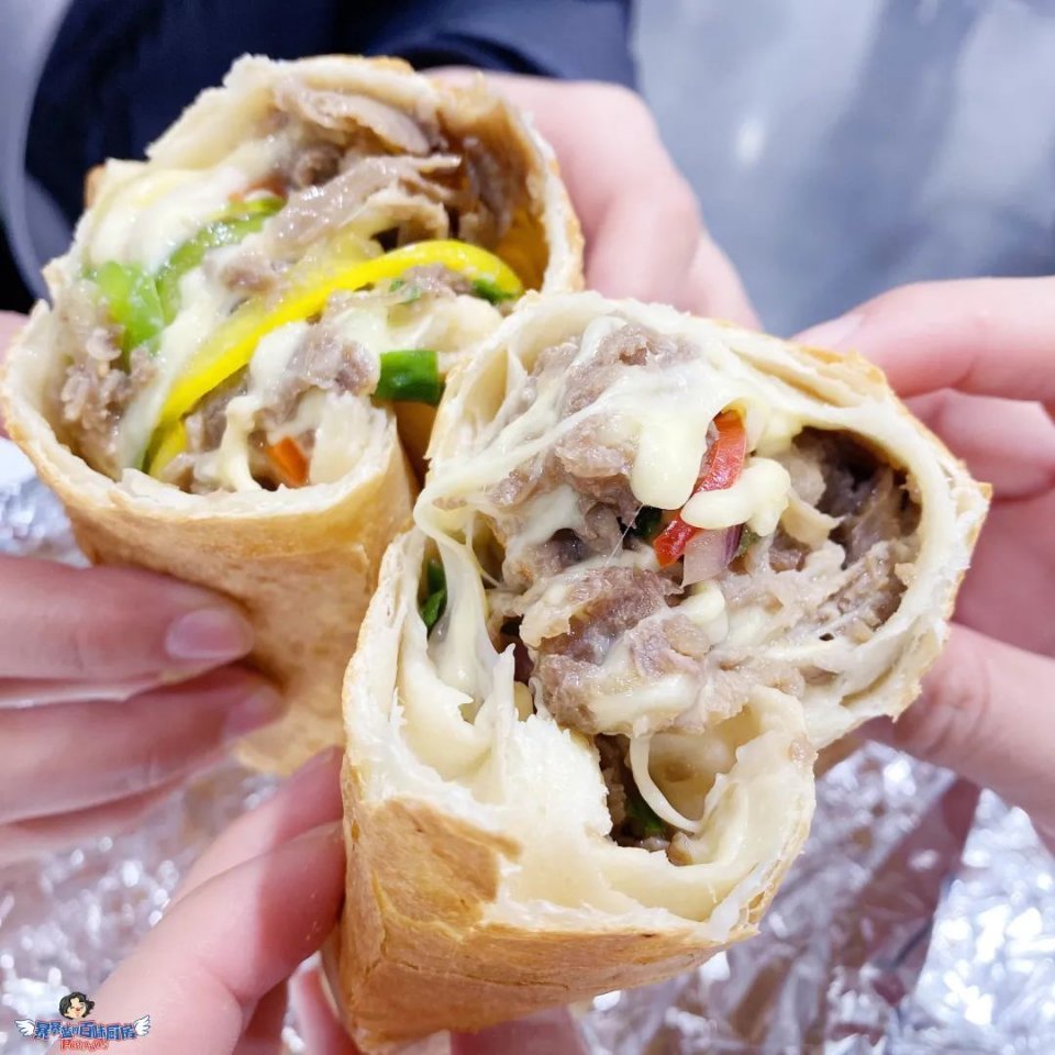 趁热掰开吃,香浓进口芝士+澳洲和牛肉片+彩椒洋葱,又飙汁又拉丝,真的是每口都爆汁,会顺着手丫子流下来的那种,外面的皮也酥酥的,整体口感有些像披萨。