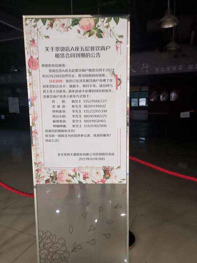 作为京西的标志,公主坟翠微不能仅仅是曾经的辉煌,还应是当下的引领者才不至于意难平。或许,时至今日,翠微的确到了需要改头换面的时刻。北京商报记者走访调查发现,公主坟翠微A座4层部分特卖区、儿童区域,以及5层的餐饮区域大面积空置。根据5层餐饮区域的公告显示,翠微百货A座5层餐饮商户租赁合同已于2021年2月28日终止,翠微收回场地。