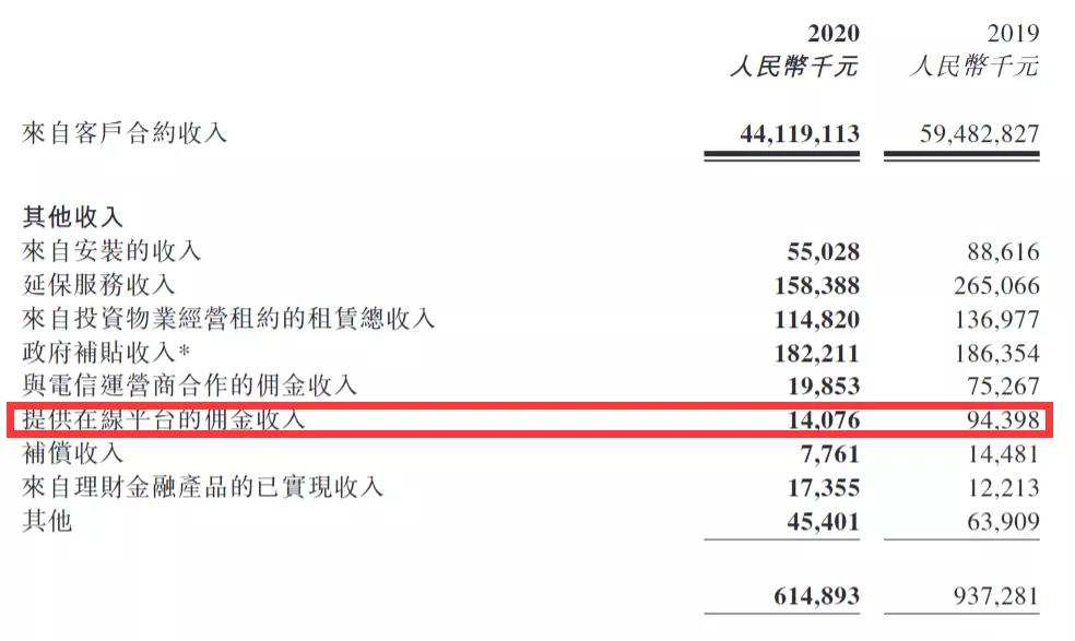 但是从营收占比来看,在做自营电商这件事上,国美所获得的佣金收入非常有限。在线平台的佣金收入从2019年的9440万,滑落到2020年的1408万,占比从0.16%滑落到到0.03%。短期内,真快乐APP很难为国美带来足够支撑业务的收入。