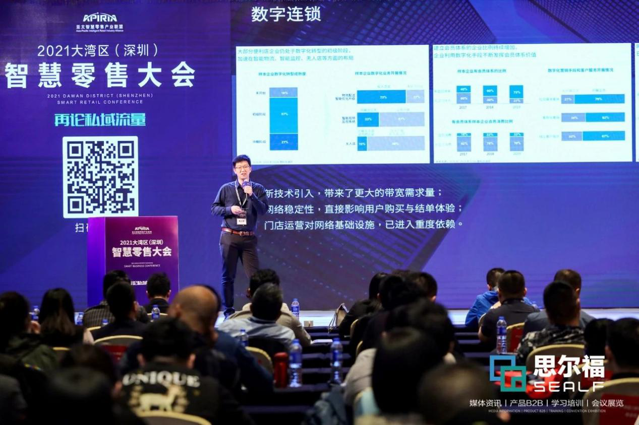 引言:近日,由亚太智慧零售产业联盟指导,思尔福、联商网、苏宁科技联合主办的“2021大湾区(深圳)智慧零售大会”在深圳观澜格兰云天酒店成功举行,中企通信以“创新技术驱动的综合信息智能化服务赋能者”身份受邀参加,资深SD-WAN专家王竣巍先生在大会现场分享《SD-WAN+,智启数字化零售新潜能》主题演讲。