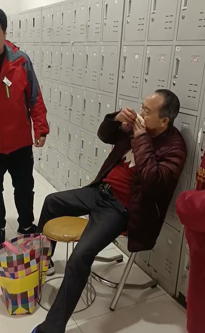(顾客身体不适,员工发现后在照顾老人,待到老人恢复后才放心让其离开)