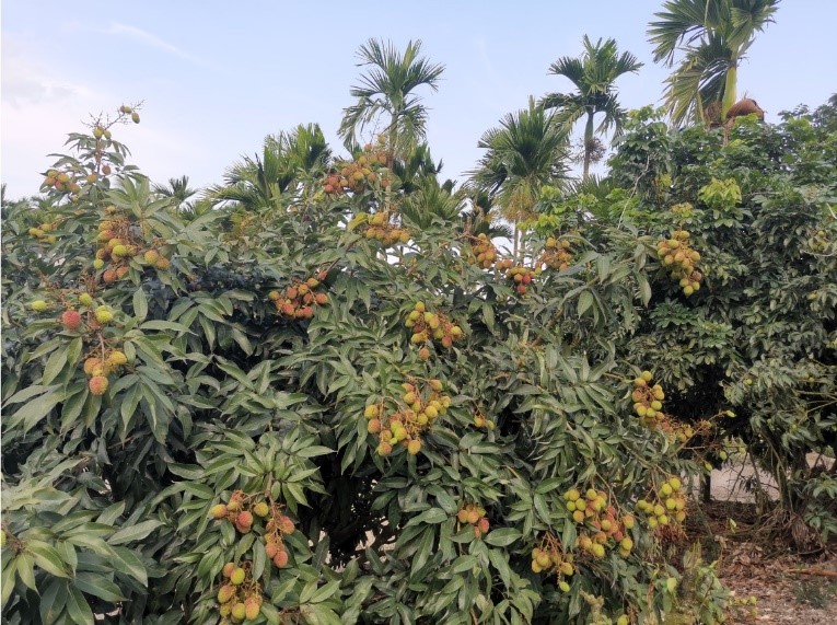(图:位于海南陵水的苏宁家乐福荔枝直采基地,荔枝鲜果挂满枝头。)