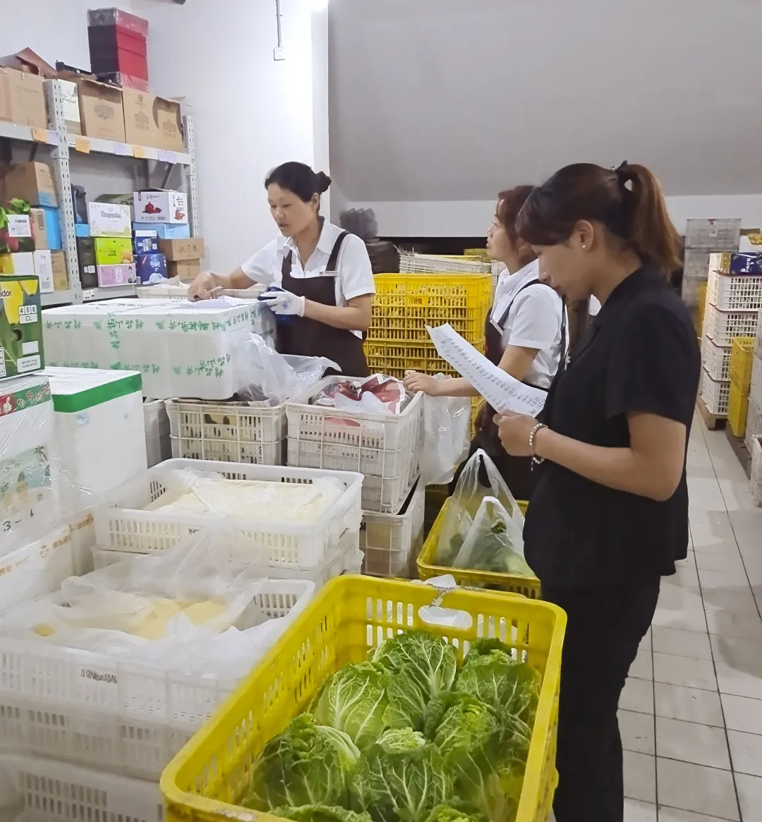 采购人员从源头开始把关,严格筛选货源资质;货到配送中心,验货人员对所有货品品质对照标准认真检测、验收入库;分拣人员根据需求将优质商品一一细分;检测人员将分拣好的生鲜商品再次检测,确认合格后发往门店;货到门店后,政府部门工作人员与门店工作人员对商品再次检查验收,随后一起护送到指定单位......涵盖蔬菜、水果、水产、精肉等生鲜食品、预包装食品共计300余品种商品,在政府相关部门领导的指导下,一步步统筹,一件件梳理,一条条对接,万德隆人以无比的工作热情和专业、严谨的工作作风圆满完成了食材供应保障任务。