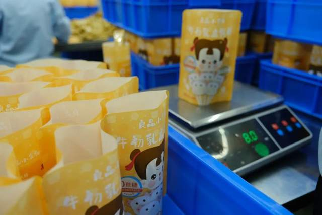 经过多轮调研和沟通,良品铺子最终选择了与广东东莞一家公司合作,完成牛初乳高钙棒的生产加工过程。