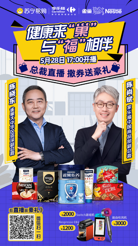(图:苏宁家乐福联合雀巢开展总裁进直播间活动)