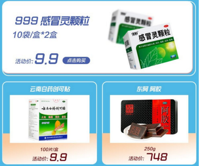 据悉,28日开业当天,由苏宁大药房联合厂家补贴消费者,同仁堂、汇仁、东阿阿胶、999、云南白药、白云山、九芝堂等30个大牌药品5折起售,同时在男科用药、营养补充、家庭日常用药等重点类目,补贴上千只药品,让消费者享受到实实在在的优惠。比如,999感冒灵颗粒10g*9袋/盒开业当天2盒仅售9.9元。