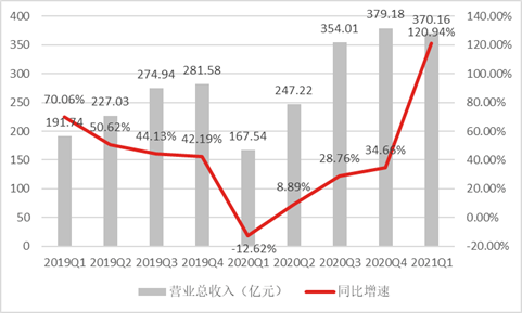 而服务电商方面,美团日前也发布了自己的2021年一季度财报。财报显示,美团2021年一季度公司营收370亿元,较去年疫情期间同比增长120.9%,实现稳健增长。截至2021年3月底,美团年度交易用户数和活跃商户数均创历史新高,分别为5.7亿和710万。不过,净亏损达到38.92亿。