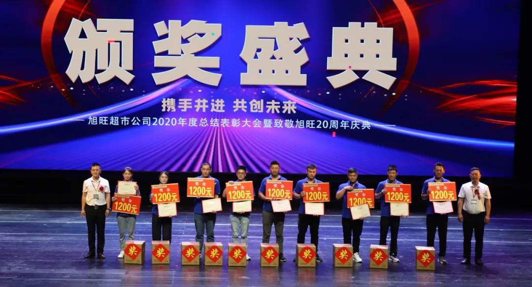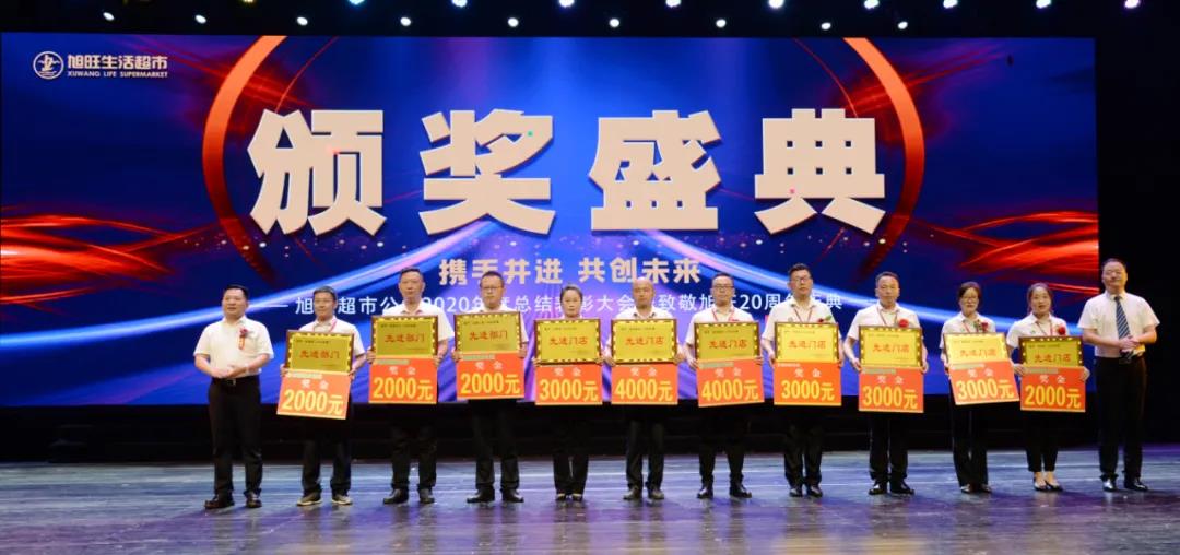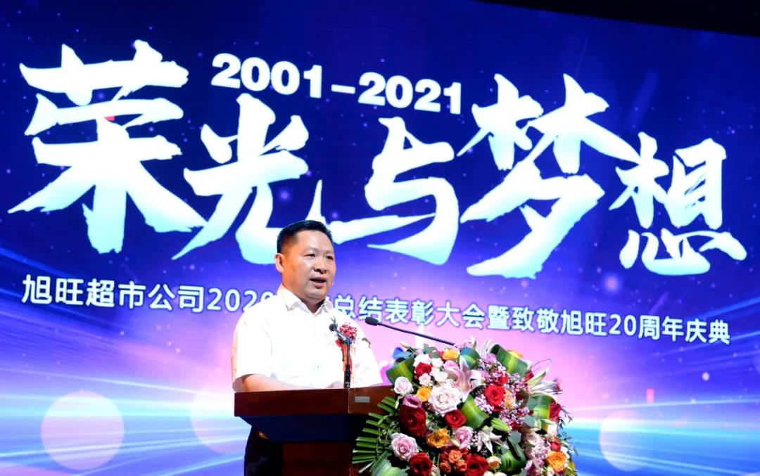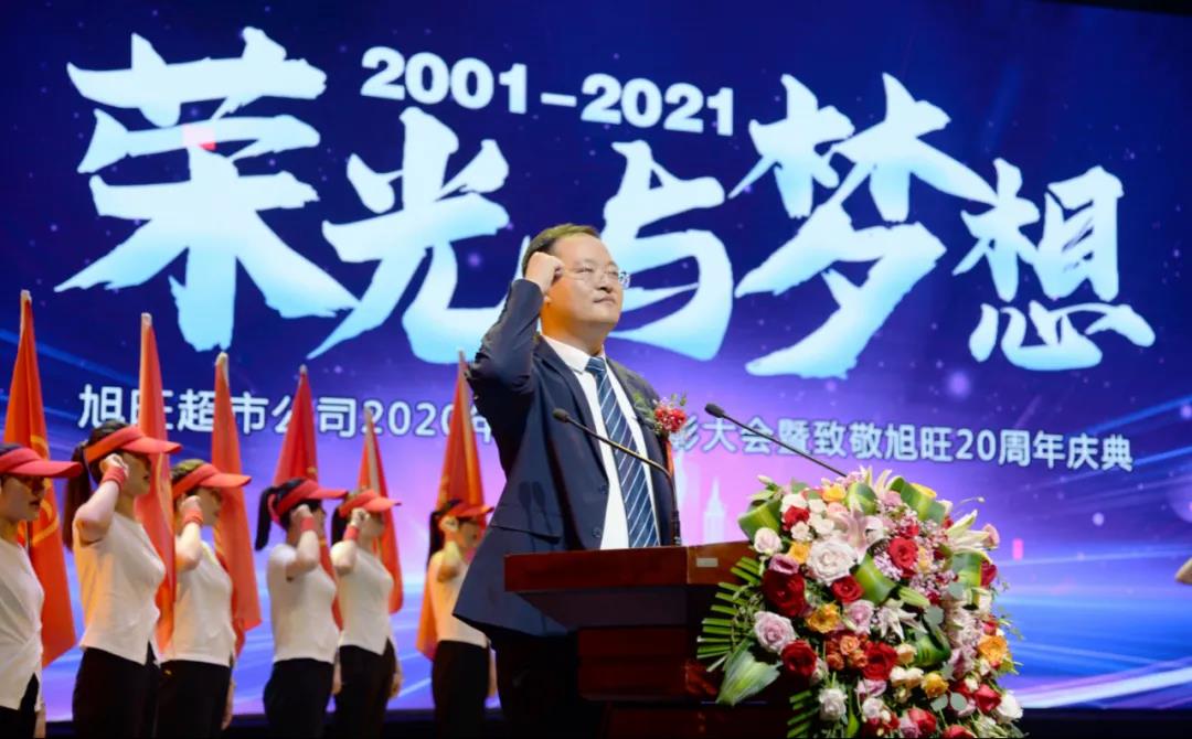 龙商网消息:6月10日,旭旺超市公司“荣光与梦想”2020年度总结表彰大会暨公司成立20周年庆典在睢宁四馆隆重举行。来自公司总部、配送中心和33家门店的代表、供应商代表等共计700余人参加了会议。