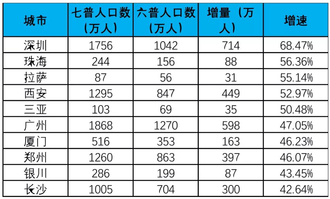 很多人以为人口增长速度最快的是深圳,其次就是杭州、广州了。其实,广州只能排在第六位,杭州更是跌出了Top10。