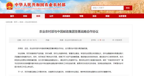 近日,农业农村部与中国邮政集团签署战略合作协议,合力推动乡村振兴高质量发展。