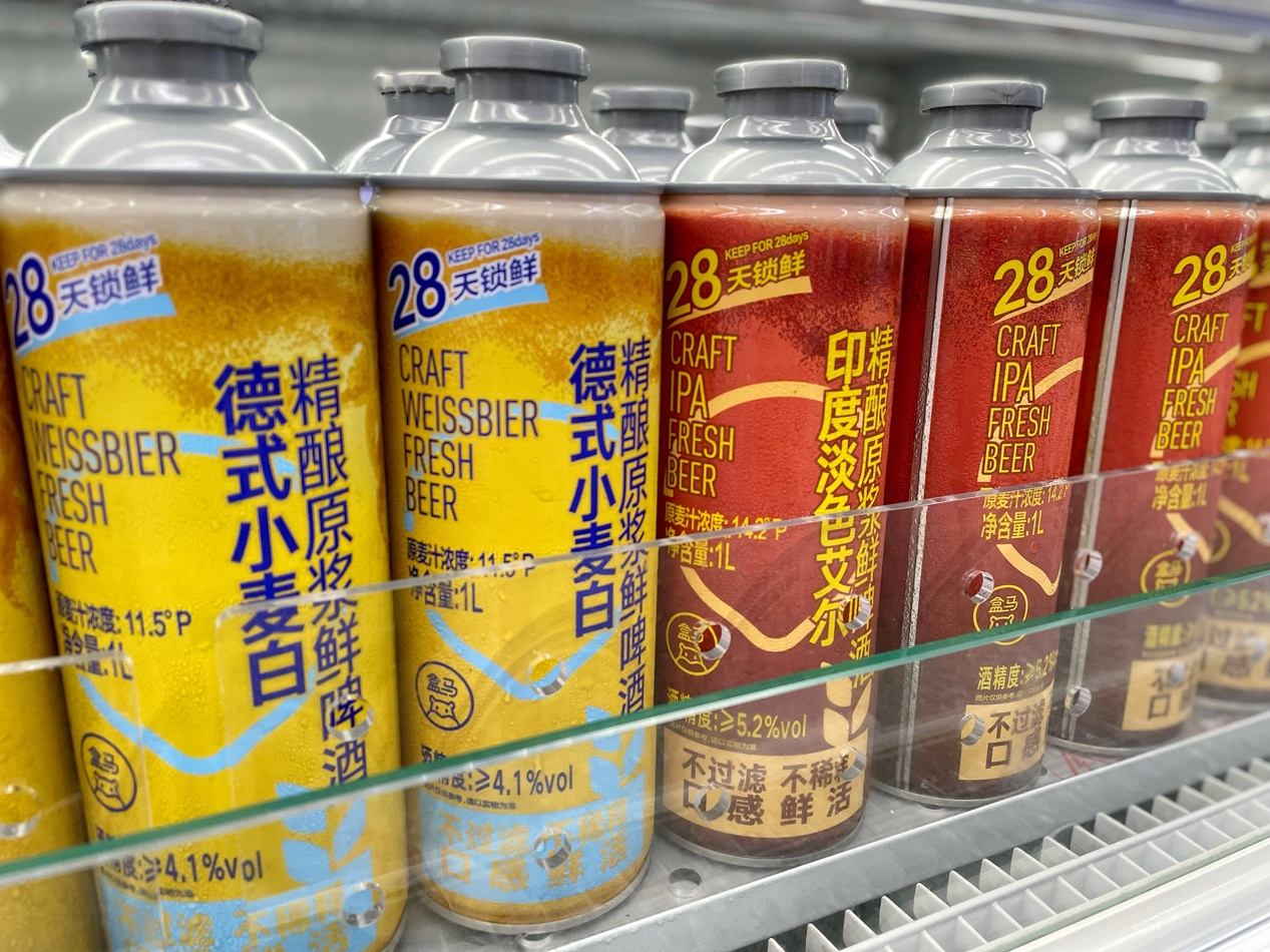“盒马也是行业里首个把精酿鲜啤实现标准化生产、运输的新零售商超,让消费者在家也能喝上跟外面酒吧一样新鲜的精酿啤酒。”盒马负责酒饮的采购徐俊说,这两款啤酒从工厂到门店、消费者家中,需全程控制温度在0℃到8℃。