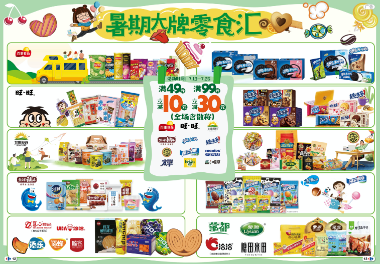 正值家乐福26周年庆之际,7月13日至7月26日,家乐福正式开启“休闲食品节”第一弹,旺旺、加州原野、奥利奥、百事食品、盐津铺子、趣多多等数十家优质零食品牌齐聚,为家乐福生日献礼,为过暑假的嘴巴助兴。家乐福全场零食(含散称)满49元立减10元,满99元立减30元。