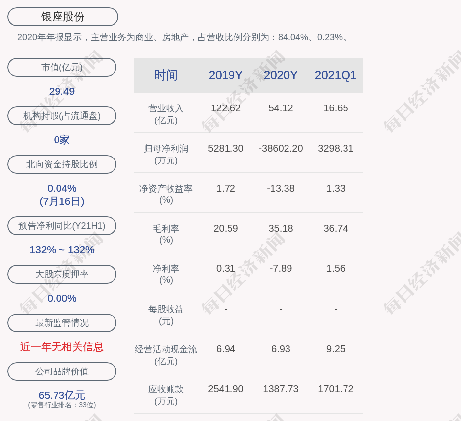 银座股份2021年一季度扭亏为盈,营收16.65亿元