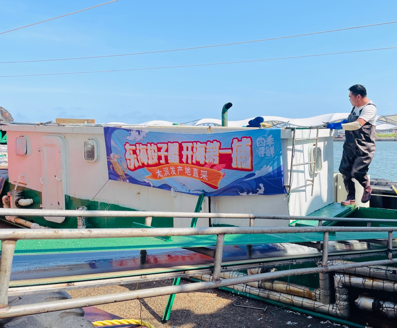 (东海肥美的梭子蟹于8月1日开始捕捞,大润发水产买手们一早守在码头)