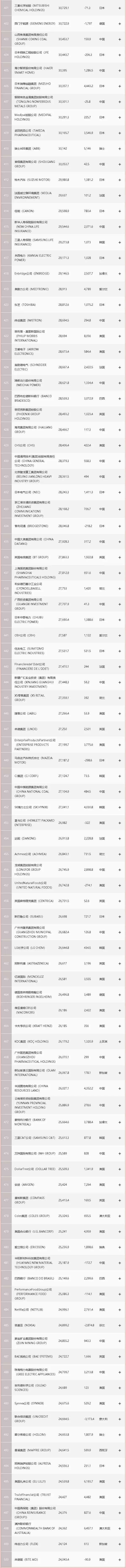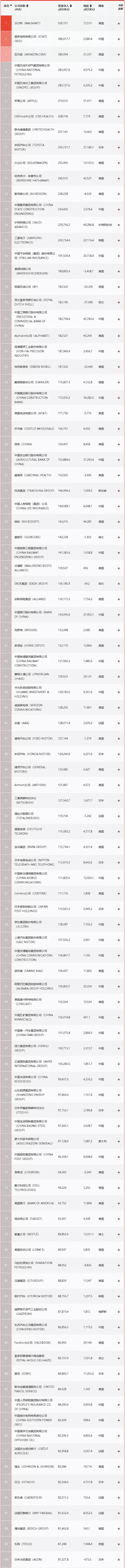 以下为2021《财富》世界500强完整榜单: