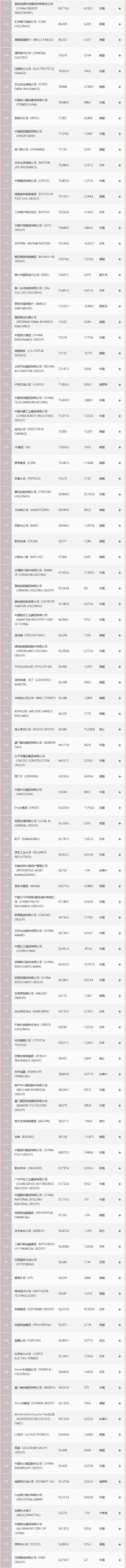 今年的榜单里,中国大陆(含香港)上榜公司数量连续第二年居首,达到135家,比上一年增加11家。加上台湾地区企业,中国共有143家公司上榜。今年,美国共计122家公司上榜,比上一年增加1家。