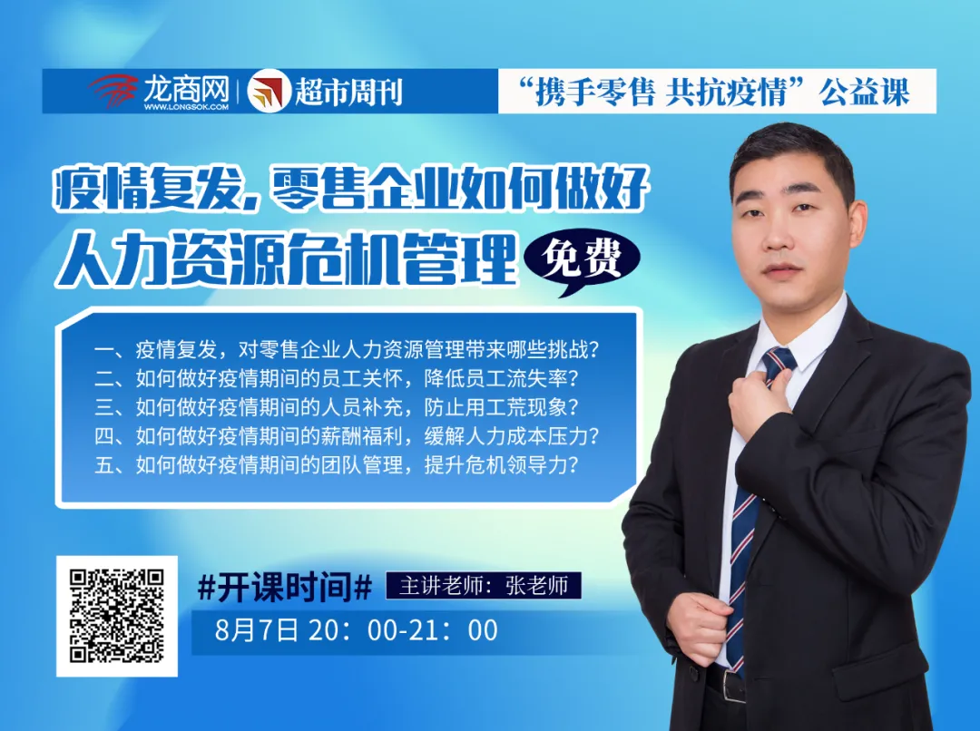 本期主讲: 张老师 课程主题: 疫情复发,零售企业如何做好人力资源危机管理 直播概要: 一、疫情复发,对零售企业人力资源管理带来哪些挑战? 二、如何做好疫情期间的员工关怀,降低员工流失率? 三、如何做好疫情期间的人员补充,防止用工荒现象? 四、如...