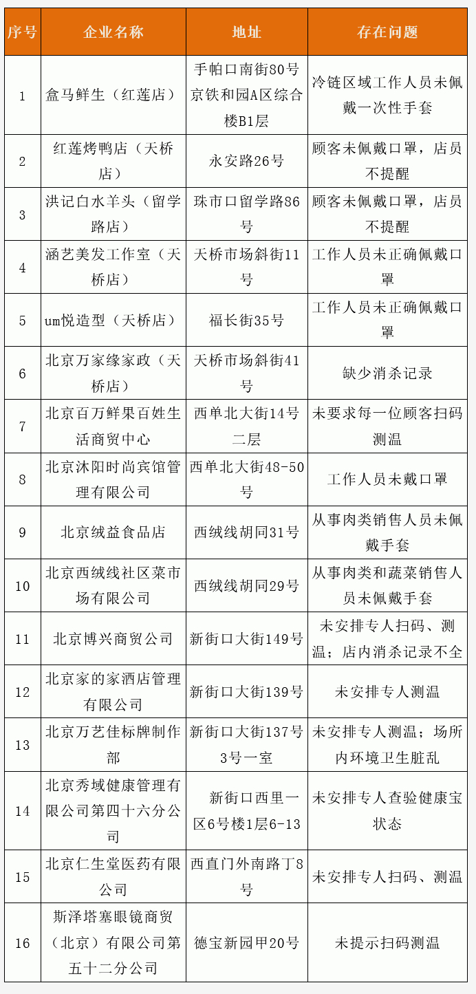 据“西城市场监管”微信号消息,西城区通报第二十三批未按要求履行疫情防控主体责任市场主体,盒马鲜生(红莲店)等16家店在列: