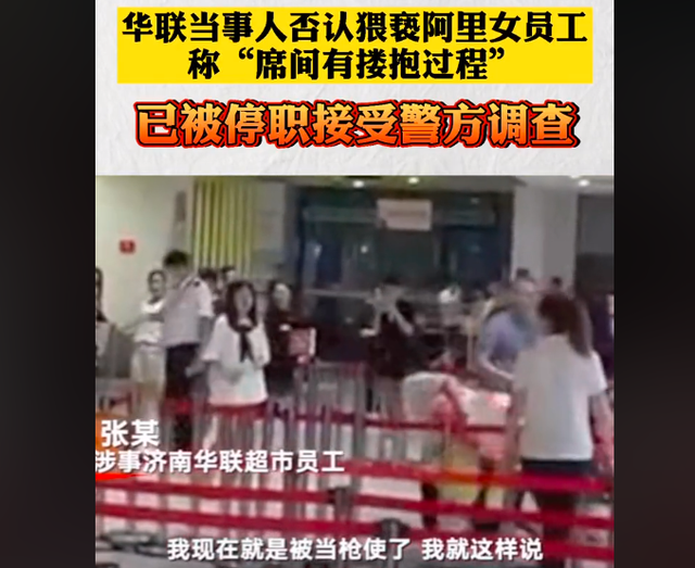 8月8日下午,济南华联超市员工张国接受采访表示,他正在派出所做笔录,“我现在就是被当枪使了,我就这样说,被冤枉了。因为就是正常的一个酒局吃饭,就是在正常的喝酒过程,中间肯定有接触的过程,就是有搂抱的过程。”
