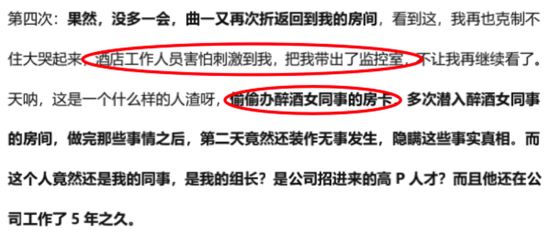 而且根据阿里女员工自述的说法,张国其实比王某文还要更早,并在酒桌上当着酒桌上其他人,公然第一个对阿里女员工实施了猥亵行为。而且根据女员工的自述内容来看,女员工遭遇这场酒局的侵害,来自王某文要“送美女”给华联的合作方。具体指向的人,就是这个张国。