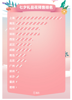 8月13日,盒马花园发布《2021盒马七夕鲜花消费报告》,披露一组鲜花消费洞察。数据显示,今年七夕,鲜花预售最多的城市前三名分别是:上海、南京、杭州。在盒马花园所覆盖的城市中,郑州人均鲜花消费金额位列第一,武汉、成都紧随其后。2021年至今,盒马花园的男性用户同比增长了53%,50岁以上的消费用户增长了64%。