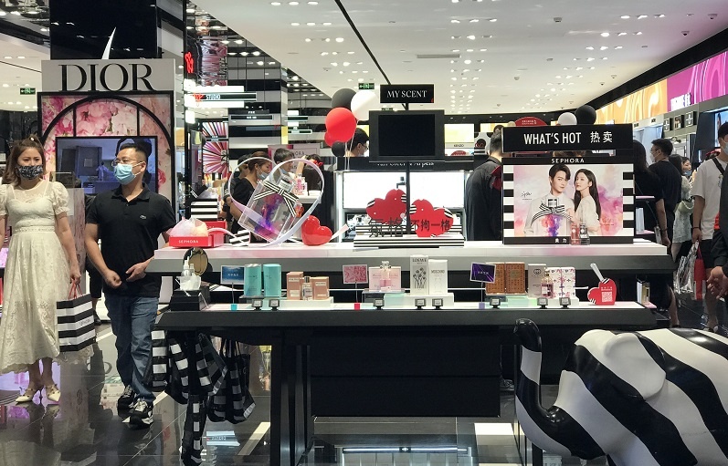 当日,在西单商圈的君太、汉光、大悦城等商场内,中国商报记者看到,几乎每个商场都顾客盈门、熙熙攘攘,苹果旗舰店、花店和部分餐厅门口甚至要排队才能进入。而为了迎接七夕,很多商场及各大专柜也进行了专门的布置和装饰,闪耀的红心随处可见,专门为七夕准备的礼盒和套装被放在最显眼的位置,同时还有针对七夕推出的折扣价格。