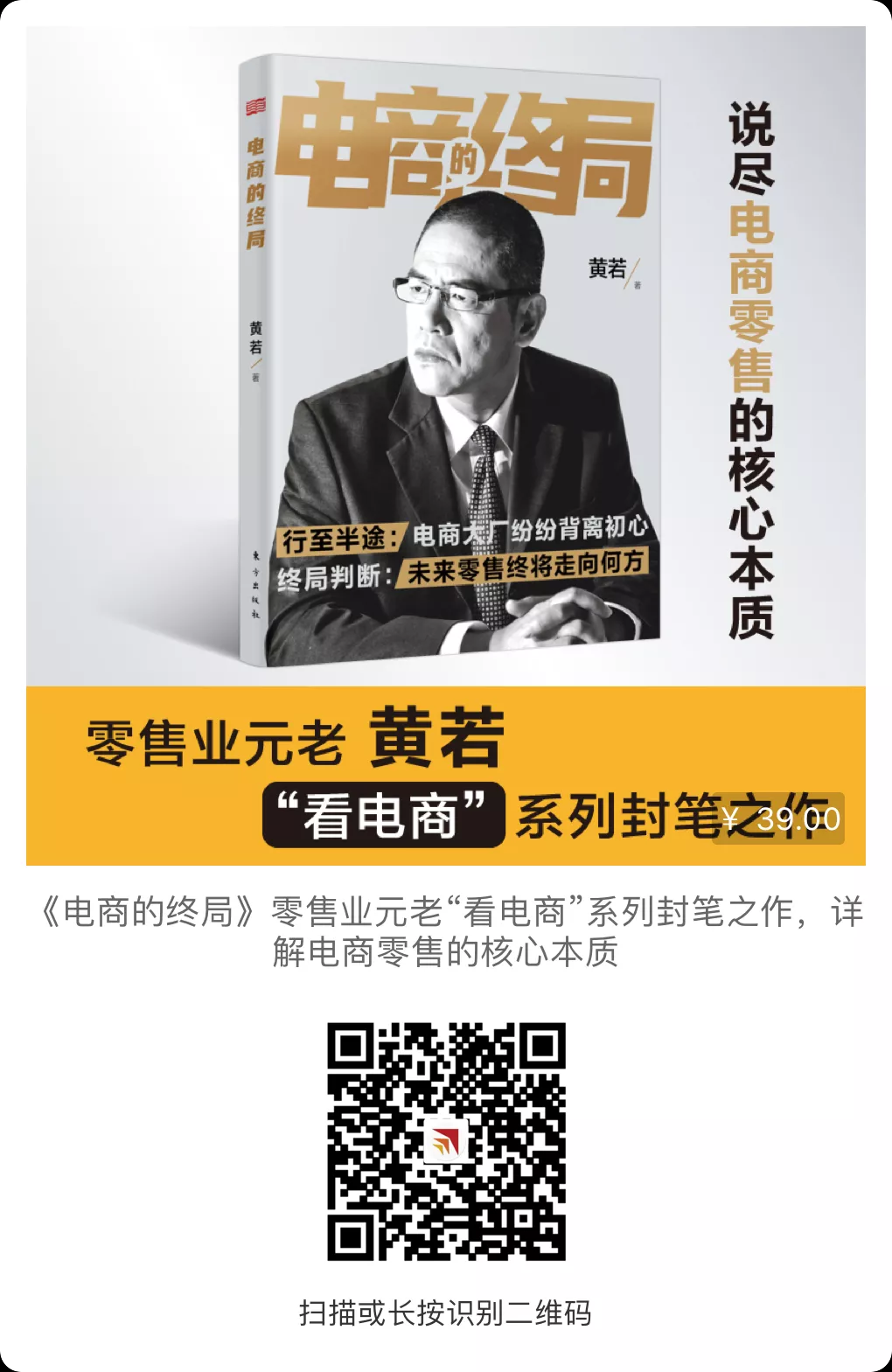 编者按: 《电商的终局》是黄若关于电商零售题材的封笔之作,近期由东方出版社出版。黄若以自己三十多年实体零售、电商管理、投资人和创业者的多重身份,总结了零售行业从农业时代简单商品交换,工业时代标准化规模生产,到今天信息时代互动式营销,流量为王...