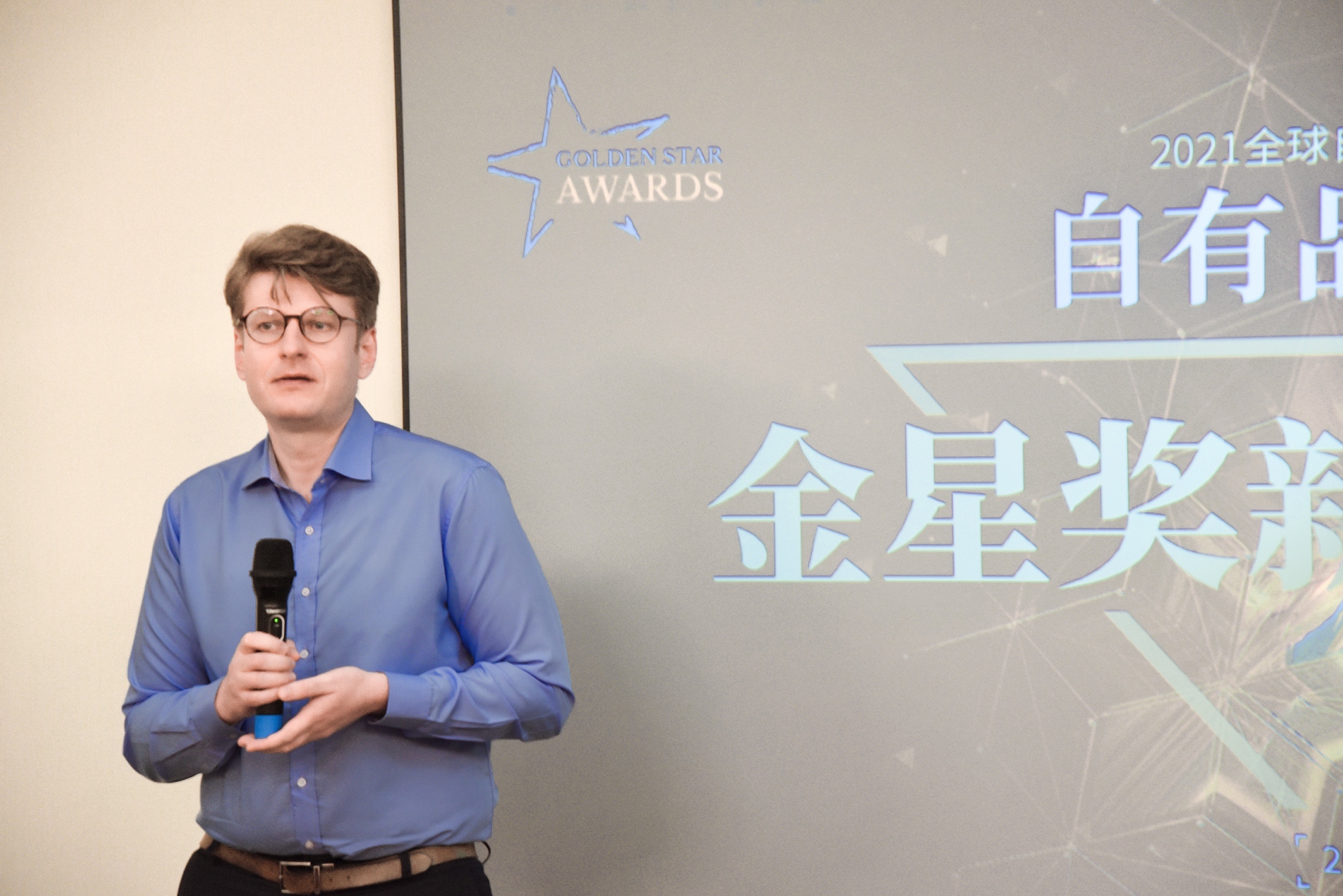 上海亚东展览服务有限公司罗刚先生在会上致辞时说:中国自有品牌评选金星奖今年来到了第五届,预计颁发近40个产品类的奖项。我们希望在评选中看到更多的零售企业、更多的自有品牌、更多的品类和创新性产品。随后揭晓了本届金星奖的评选细则。