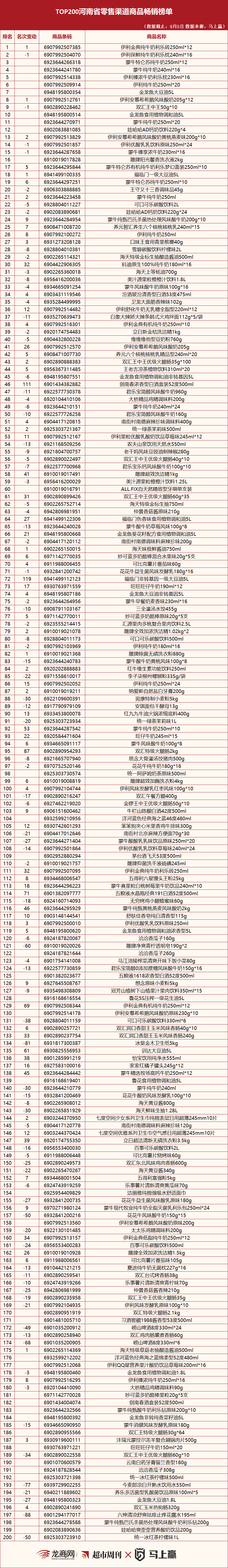 “TOP200河南省零售渠道商品畅销榜单”发布(7月4日版)