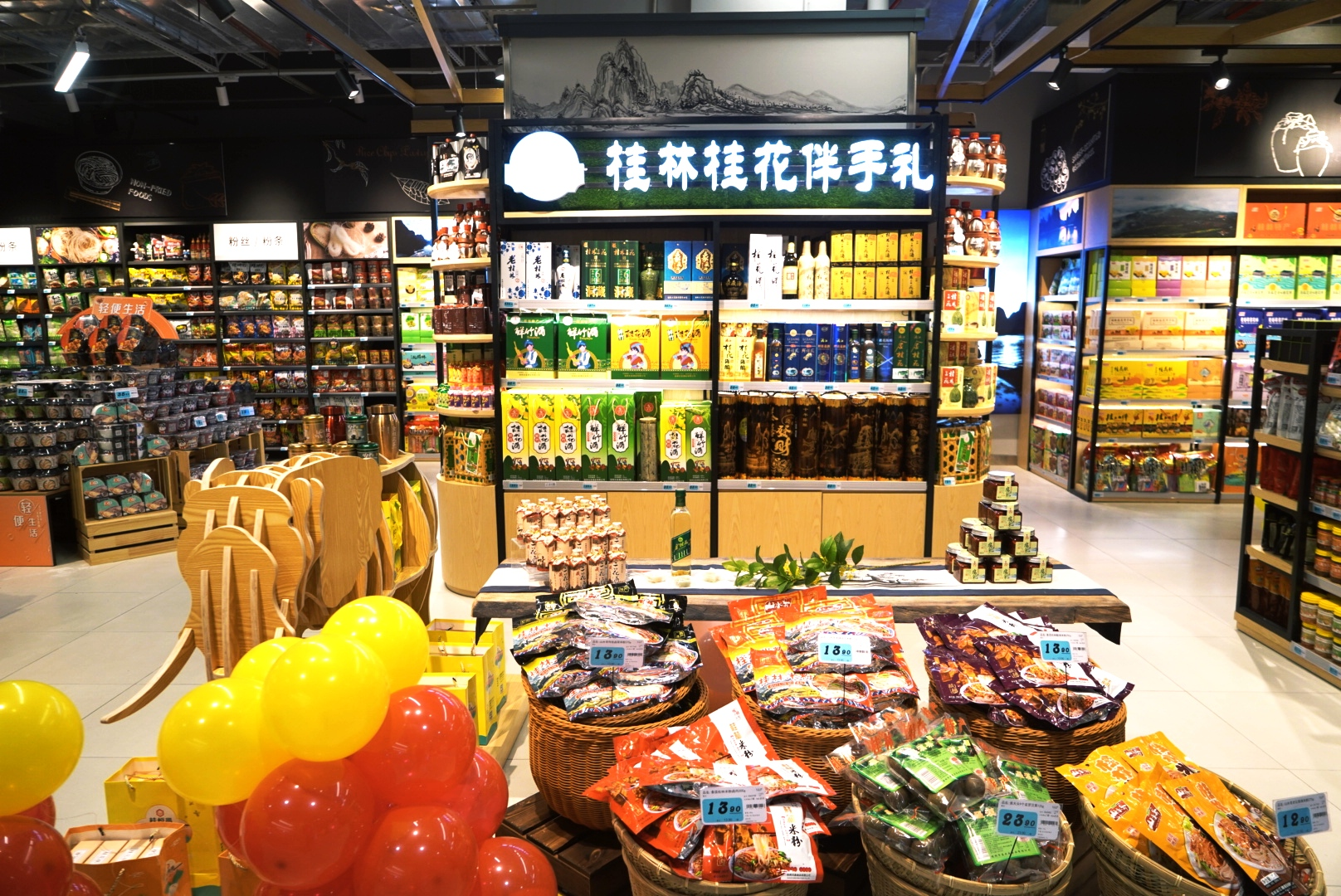 桂林作为全国知名的旅游城市,大润发对于选址兼顾了本地居民和游客消费需求,距离知名景区漓江只有3公里。“开店前我们做了充分的市场调研,为了更好满足这两类人群的消费需求,并和本地零售商超做出差异化,桂林首店精选了1.6万款商品,与标准门店做出了40%的品项差异。”大润发华南区总经理魏正勤说,网红商品占比约四分之一,店内还设置了伴手礼专区,提供螺蛳粉、桂林米粉、罗汉果、桂花酒等地方特色美食酒饮。