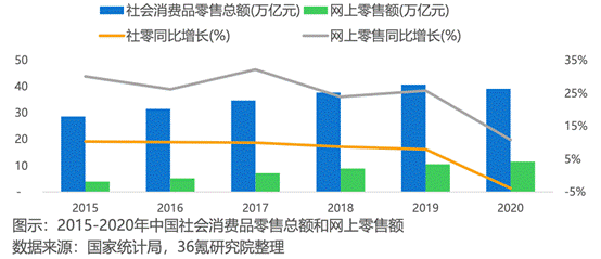国家统计局数据显示,我国零售销售额持续增长,但整体增速逐年回落,2020年全年我国消费品零售额同比减少4%,其中网上零售尽管实现了增长,但增速同比2019年下降15个百分点。有相关报告认为,零售行业增长困境已经显现,这主要源于线上线下渠道痛点,包括线上流量红利见顶,平台获客成本高企,线下商家管理运营效率有待提升等。