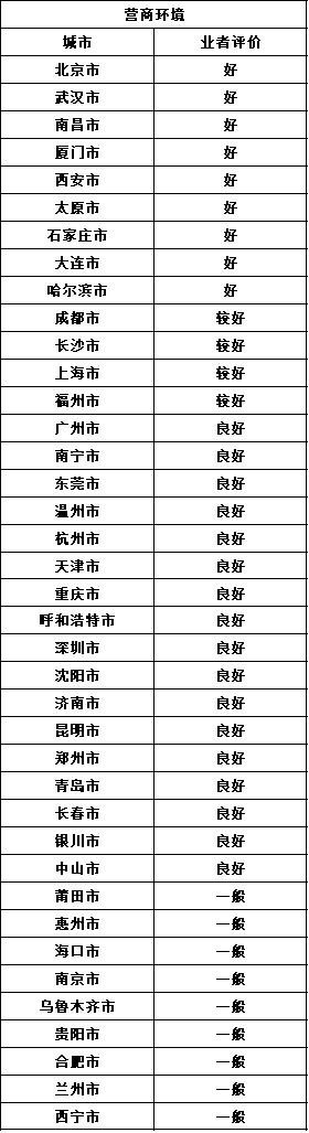 营商环境指数:按照调查出的好、较好、良好、一般、较差、差,降幅赋值100-50。